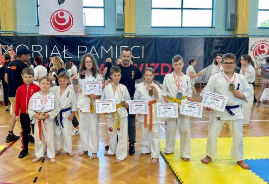 12 medali na Ogólonopolskim Turnieju w Brzostku. 5 złotych medali Karol Blicharski - Kumite Karol Blicharski - Kata Łucja Blicharska - Kumite Aleksander Hellwig - Michniak - Kumite Mikołaj Kluba - Kata 3 srebrne medale Marcel Kaleta - Kata Marcel Kaleta - Kumite Kuba Salamaga - Kumite 4 brązowe medale Andrzej Opoczko - Kumite Tymon Salamaga - Kumite Łucja Blicharska - Kata Mikołaj Kluba - Kumite Ogromne gratulacje dla zawodników oraz dla trenera za efektywne przygotowanie! Zakończenie sezonu startowego w tym półroczu możemy uznać za udane. Mimo, że jesteśmy już po zawodach przypominamy iż trenujemy do końca czerwca! Zadanie „Ciało – umysł – siła” jest realizowane przy wsparciu finansowym Miasto i Gmina Niepołomice