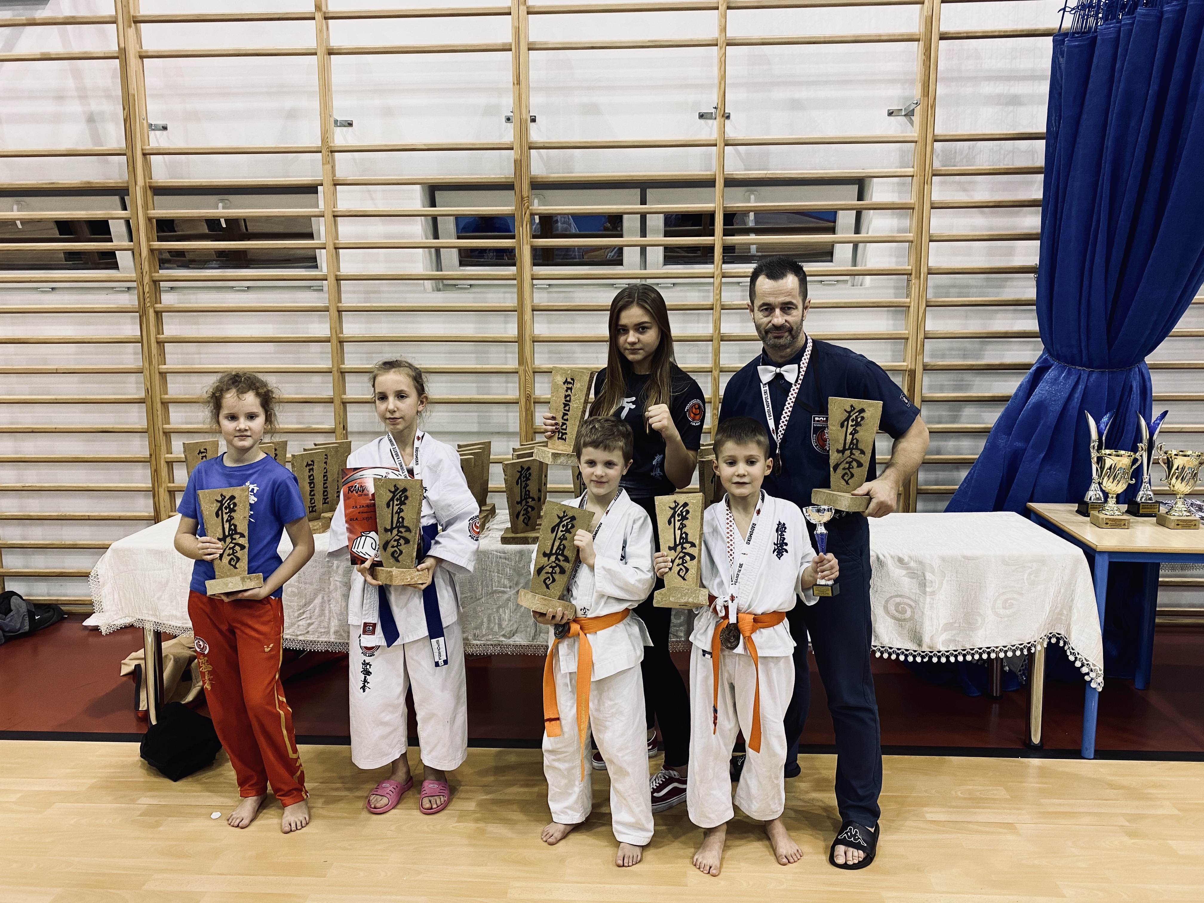 Pierwsze miejsce zdobył Karol Blicharski w konkurencji kumite 2013/2012 do 25 kg zwyciężył dwa pojedynki przez wazzari (punkt), natomiast w finale spotkał się z kolegą z klubu Witkiem. Chłopaki stoczyli świetną i widowiskową walkę jednak ostatecznie po dogrywce zwyciężył Karol, natomiast w tej samej kategorii Witek Kałuża zdobył wysokie drugie miejsce. Przed walką finałową również zawalczył dwie wspaniałe walki. Na drugim miejscu stanęła także Kaja Masłowiec w kategorii 2009/2008 do 30 kg. Wygrała dwie walki natomiast finałową zawalczyła z bardziej doświadczoną zawodniczą i musiała uznać wyższość rywalki.