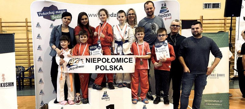 W tym samym dniu byliśmy również na Ogólnopolskim Turnieju w Będzinie. Wystartowało w nim 250 zawodników. Turniej odbywał się w konkurencji kata i kumie. Niepołomicki klub reprezentowało 6 zawodników i zawodniczek: Łucja Blcharska, Karol Blicharski, Piotr Grzegorzek, Marcel Kaleta, Witold Kałuża i Milena Tyczyńska. Zdobyli oni łącznie 3 medale – jeden srebrny i dwa brązowe.